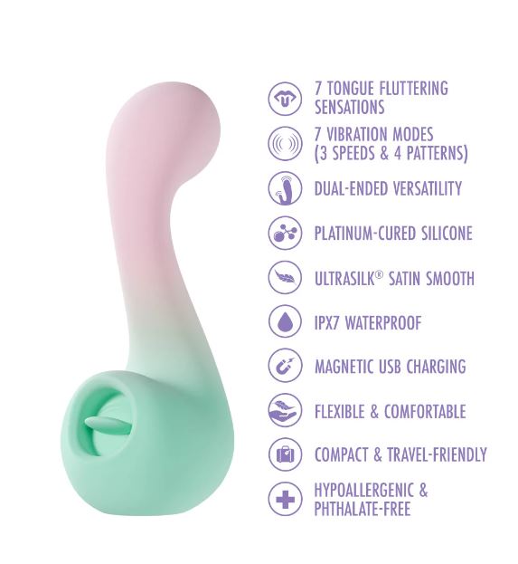 Tune into your desires with Melody, the dual-ended vibrator that turns every touch into a symphony of pleasure. Designed for seamless versatility, Melody blends deep, sensual vibrations with teasing, tongue-fluttering sensations, perfectly in tune with your every mood. Whether its slow, seductive foreplay, pinpoint clitoral stimulation, or indulgent G-spot pleasure, Melody plays the perfect note every time. Crafted from 100% body-safe platinum-cured silicone, its flexible design moves effortlessly with you, while the satin-smooth UltraSilk finish glides across your skin like a whisper. Waterproof, travel-friendly, and fully rechargeable, Melody is always ready for pleasure, anytime, anywhere. Let Melody take you on a journey of pure bliss, where every vibration, every flutter, and every pulse is perfectly tuned to your deepest desires.Color: PinkMaterial: ABS / SiliconeLength (Inches): insertable 3.5 , 5.25Circumference (Inches):Battery Runtime: Up To 110 MinutesWarranty: 1 YearBuy it now7 Smooth Vibrations (3 Speeds, 4 Patterns)7 Tongue Fluttering Sensations (3 Speeds, 4 Patterns)Dual-Ended For Endless Pleasure Possibilities100% Body-Safe Silicone, Satin Smooth UltraSilkIPX7 Waterproof & Magnetic USB Charging